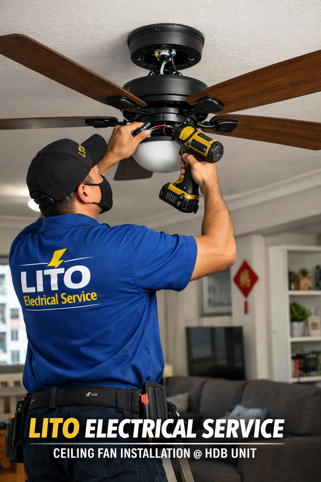 If you need ceiling fan installation in Singapore, contact Lito Electrical for safe and proper installation support.We handle ceiling fan installation and replacement for HDB, condo, and landed homes across Singapore.WhatsApp us today for a ceiling fan installation quote.